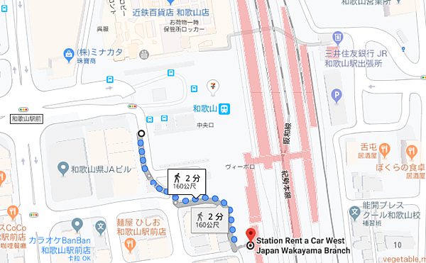 JR 和歌山駅借腳踏車的地方, 就在出 JR 和歌山駅之後, 左轉走個 160 公尺就到了.